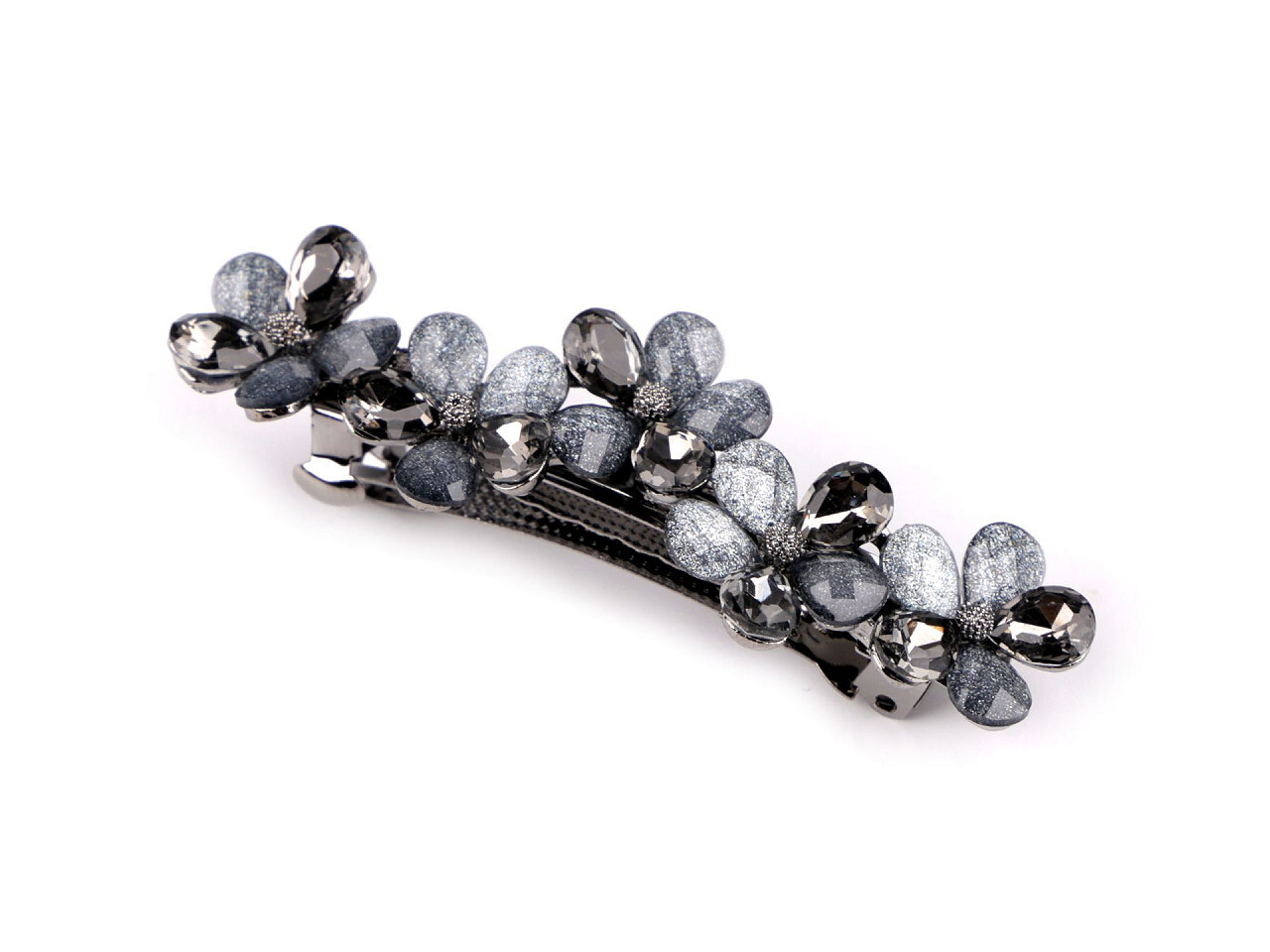 Francouzská spona do vlasů květ - 1 ks - 3 modrošedá