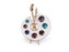 Broszka nr 1 i 2 - paleta malarska jest osadzona szlifowanymi kamyczkami, dzięki którym pięknie się mieni.