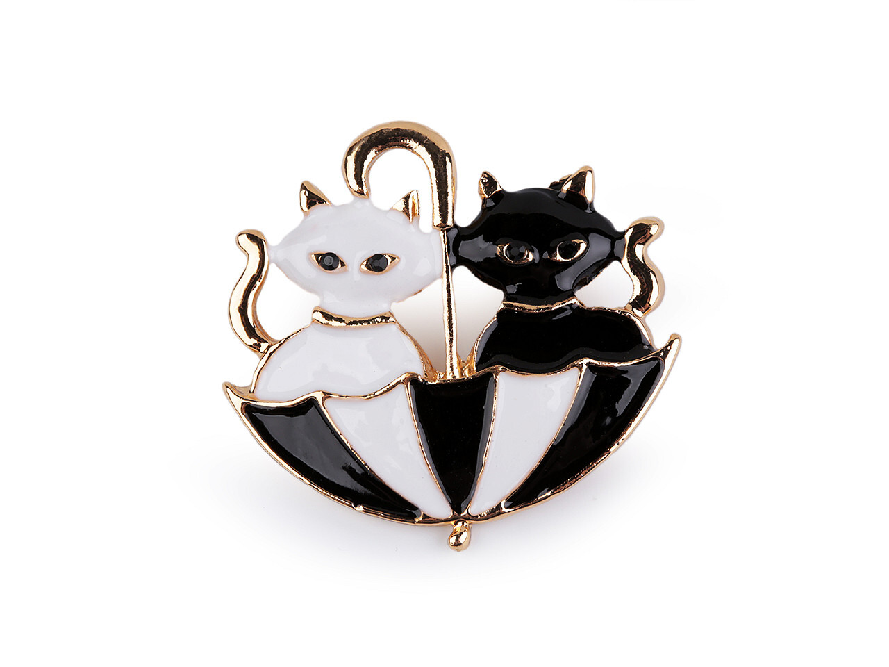 Brož malířská paleta, kočky v deštníku - 1 ks - 3 černá kočka