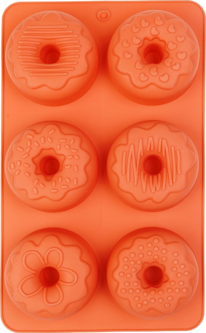 Ta praktyczna silikonowa forma umożliwia przygotowanie jednocześnie do 6 donutów. Jest idealna do pieczenia we wszystkich rodzajach piekarników - mikrofalowych, elektrycznych, termoobiegowych i gazowych. Ponadto można jej używać także do mrożenia w zamrażarce, co zwiększa zakres jej zastosowań. Forma jest wykonana z wysokiej jakości silikonu i jest wolna od BPA, co gwarantuje, że jest bezpieczna dla zdrowia. Dzięki właściwościom nieprzywierającym nie trzeba jej prawie wcale smarować ani wysypywać. Forma jest odporna na temperaturę do 260 °C i po użyciu można ją bez problemu myć w zmywarce. Wymiary 27 x 16 cm, wysokość 3 cm. Średnica donuta 7,2 cm i wysokość 3 cm. EAN 8584163094639