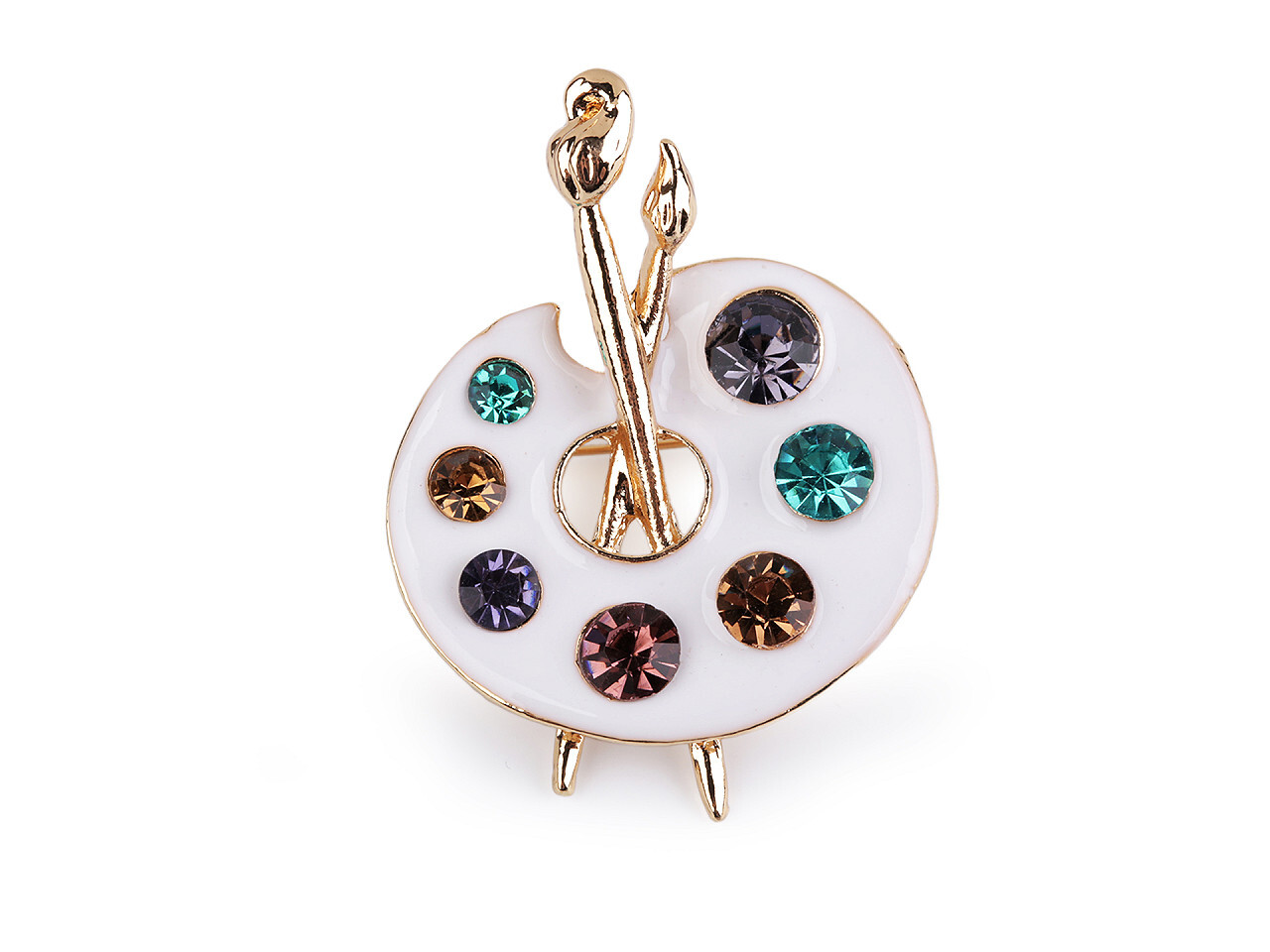 Brož č.1 a 2 - malířská paleta je osázená broušenými kamínky, díky nim se nádherně třpytí.