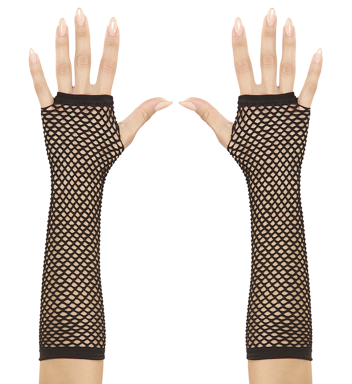 Černé rukavičky, síťované, bez prstů. Délka: 33 cm Materiál: 90% nylon, 10% elastan Velikost: dospělá, univerzální przeczytaj całość