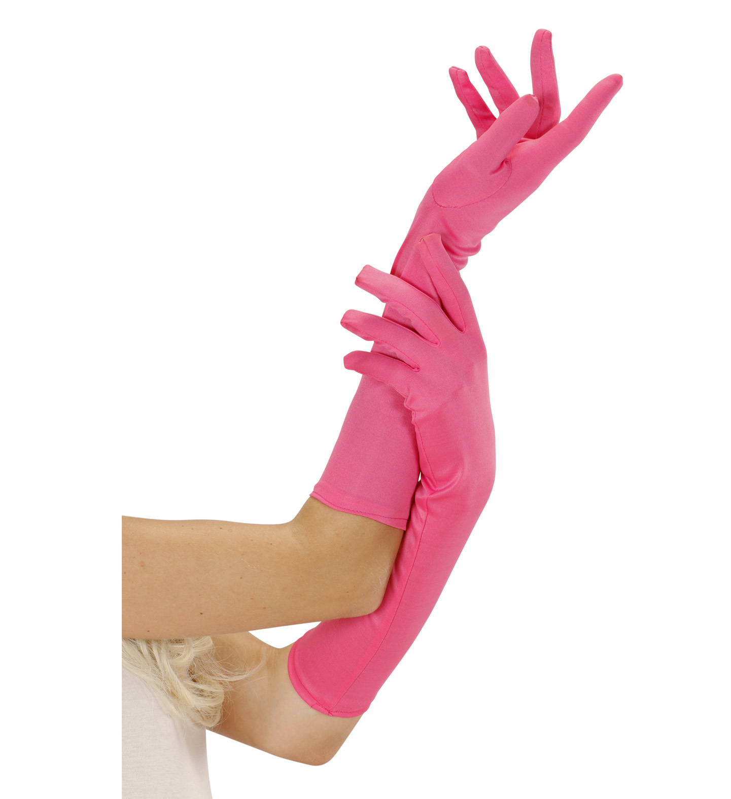 Neonově růžové rukavičky, dlouhé, svítí pod UV světlem. Materiál: 100% polyester przeczytaj całość