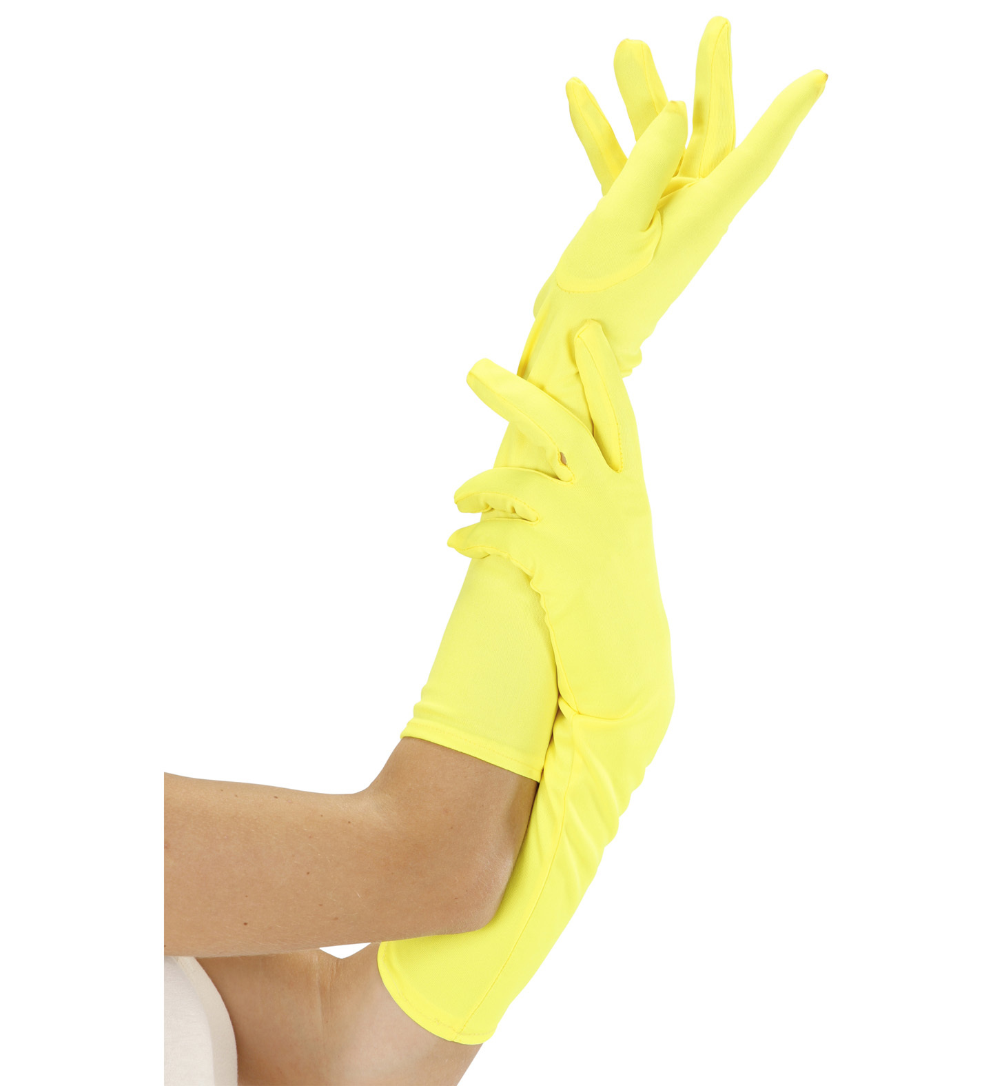 Neonově žluté rukavičky, dlouhé, svítí pod UV světlem. Materiál: 100% polyester przeczytaj całość