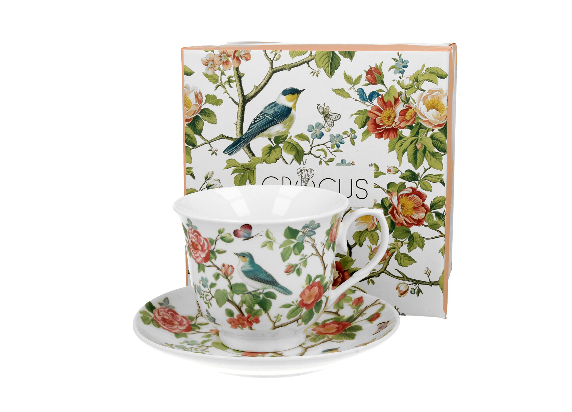 Filiżanka ze spodkiem PTAKI NA GAŁĘZI