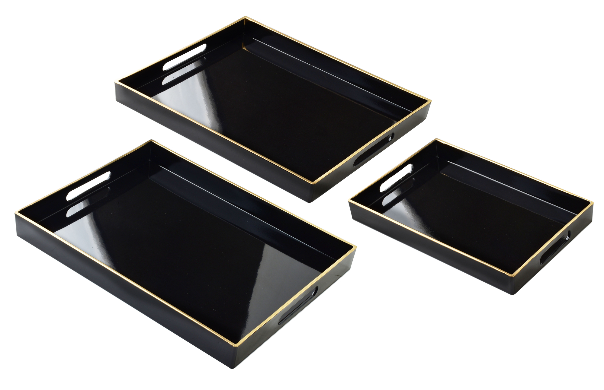 BLANCHE BLACK Komplet 3 Tac dekoracyjnych 40x30x4cm/35x25x3,5cm/30x20x3,5cm