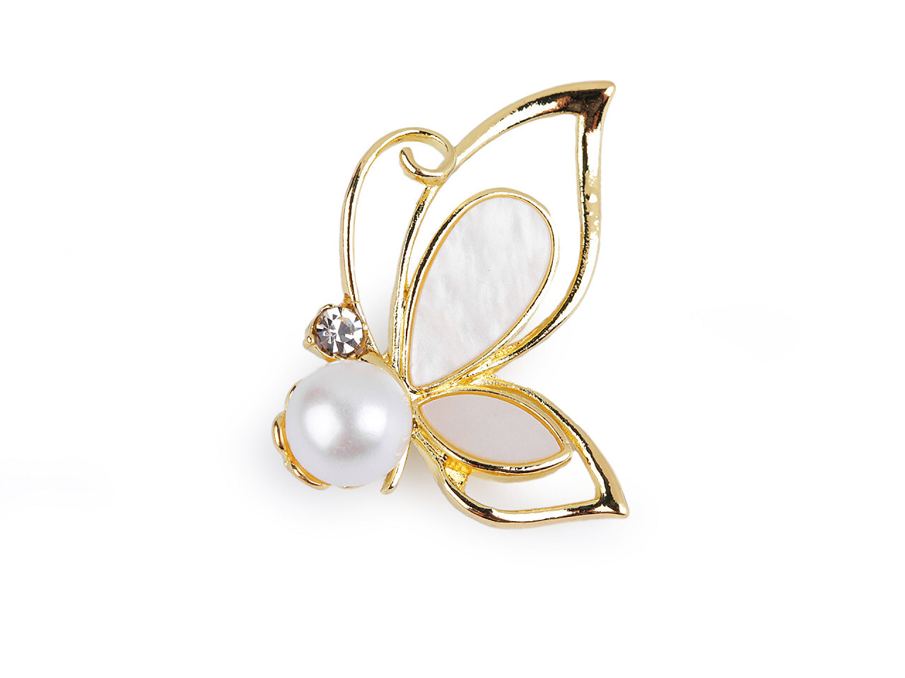 Brož motýl s perlou - 1 ks - 2 zlatá
