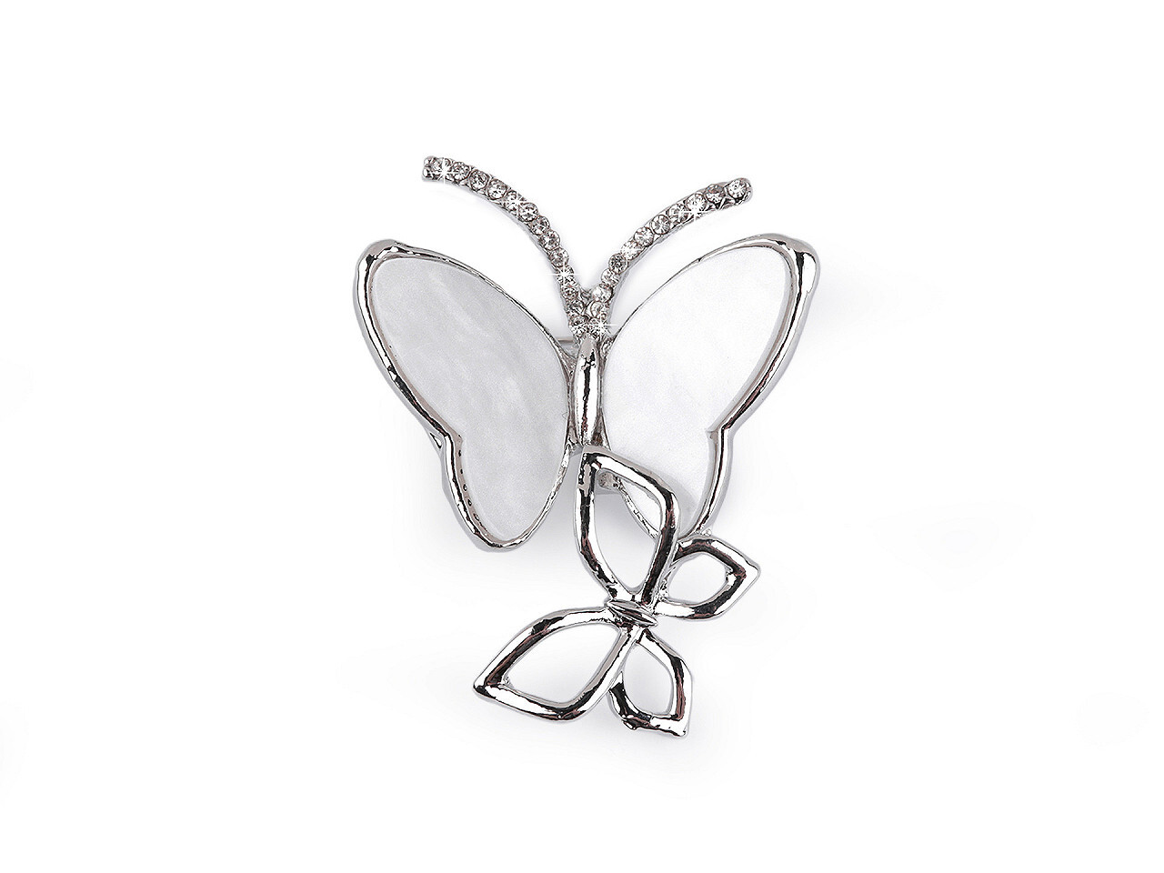 Brož s broušenými kamínky motýli - 1 ks - 1 stříbrná