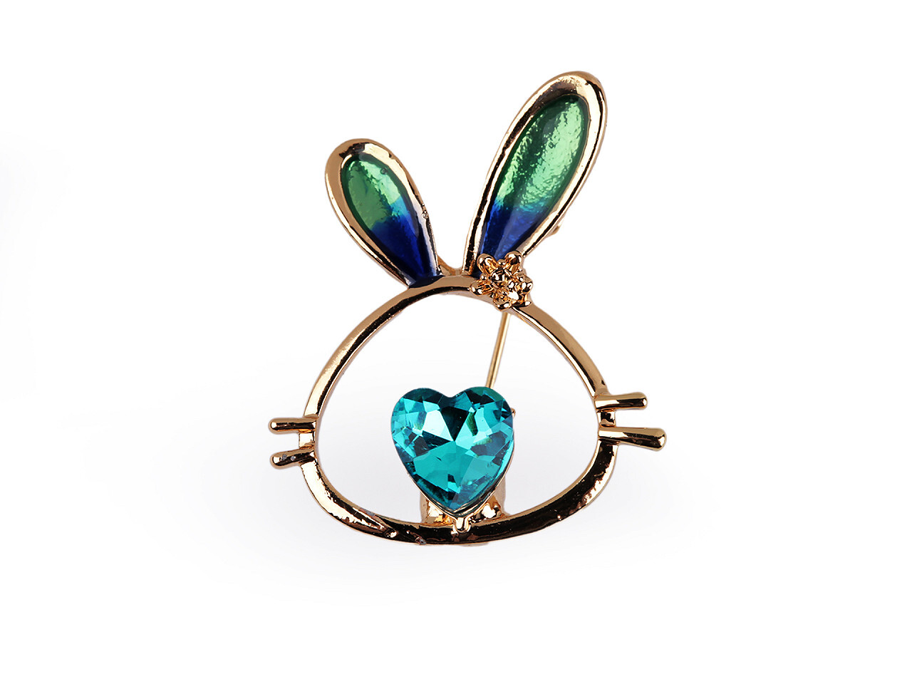 Brož s broušenými kameny zajíček - 1 ks - 2 blue zirkon