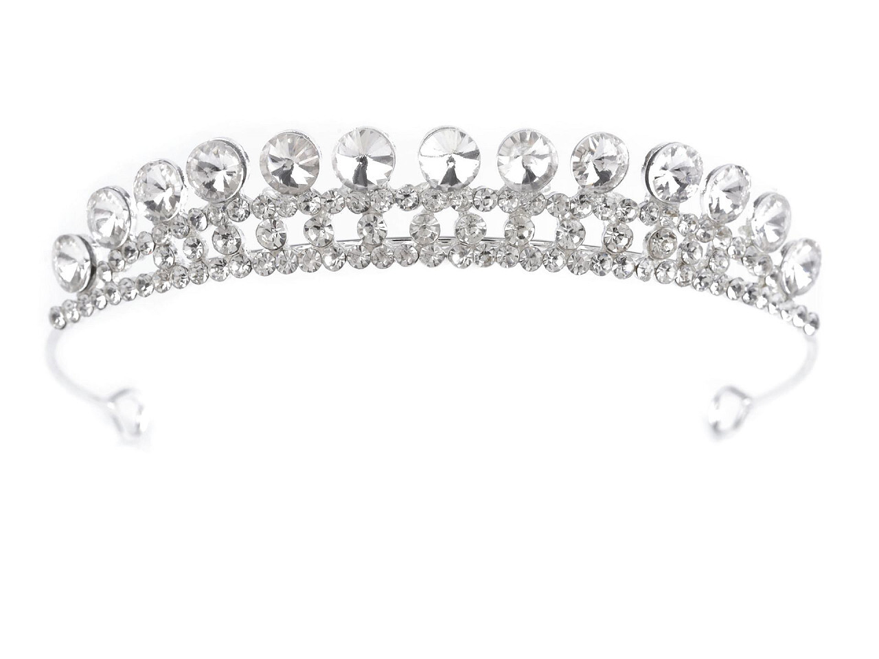 Štrasová čelenka / korunka do vlasů s očky - 1 ks - crystal stříbrná