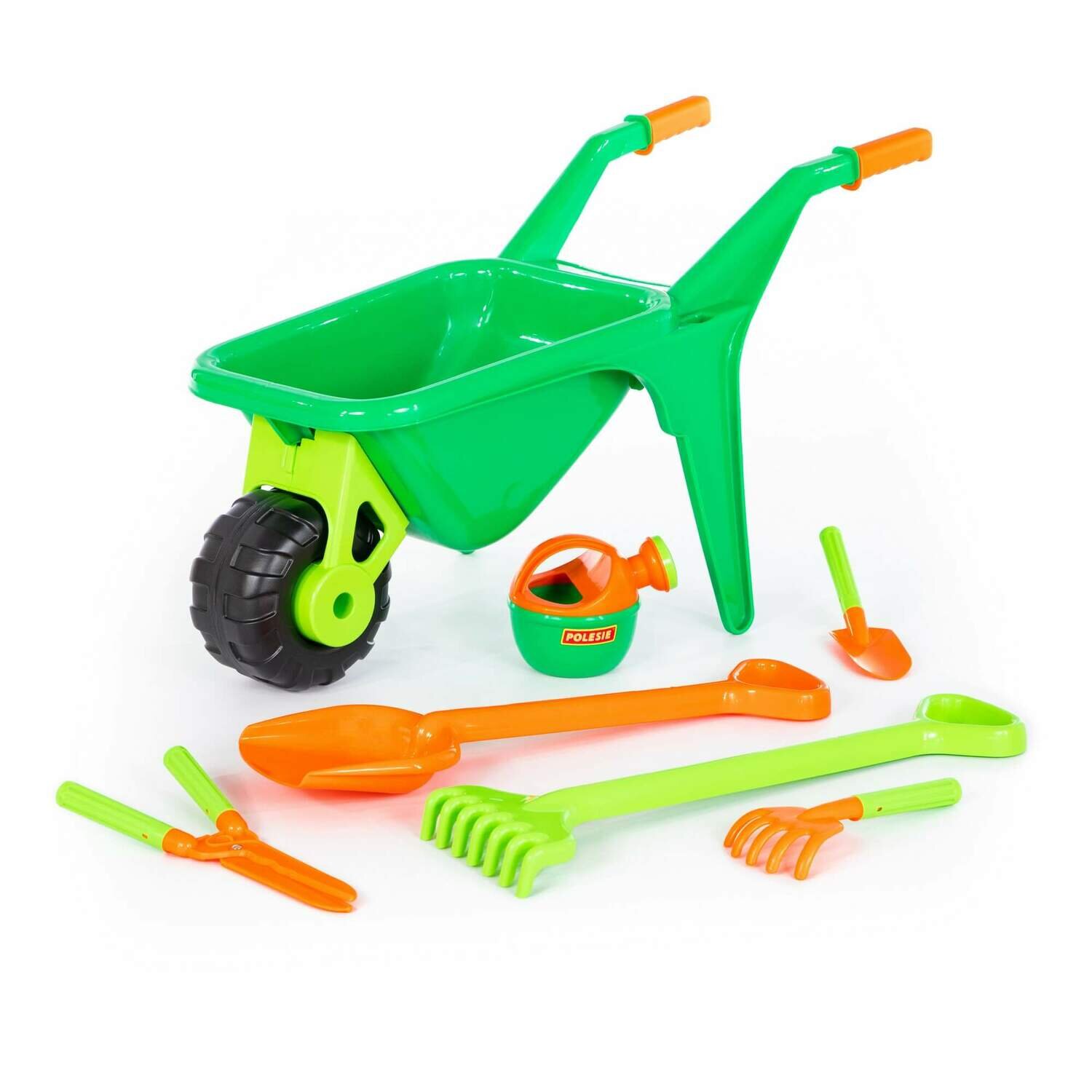 Polesie 42071 Zestaw: Taczka ogrodnik nr2 + zestaw narzędzia grabie, łopata, konewka, nożyce