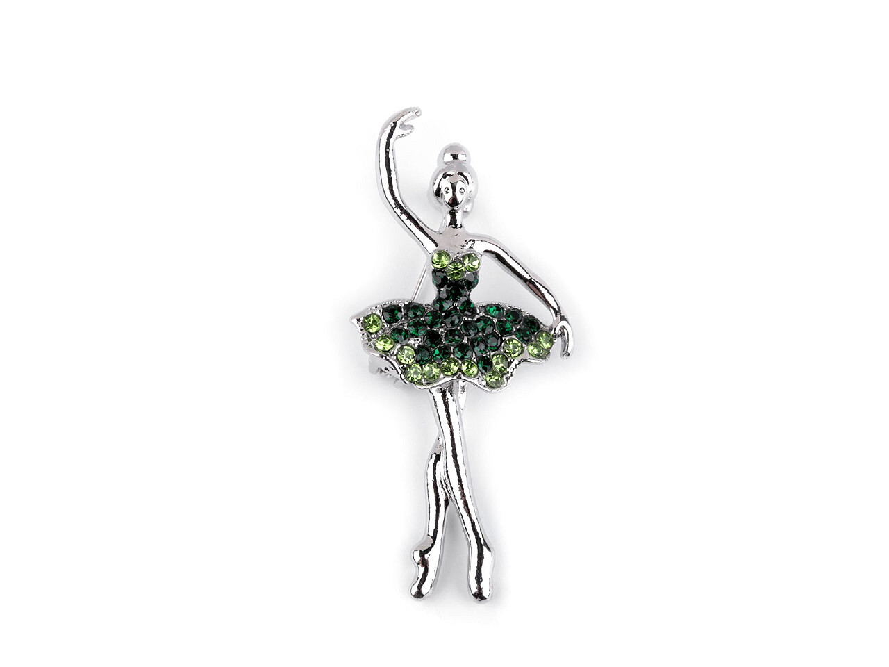 Brož s broušenými kamínky baletka - 1 ks - 2 emerald