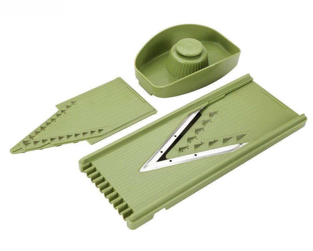 4PC MULTI SLICER SET - PLASTIC- 2PCS REMOVABLE BLADE - 1PC SAFETY HOLDER - 1PC PLASTIC SLICING BOARD - OLIVE przeczytaj całość
