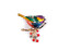 Brož s broušenými kamínky ptáček, papoušek - 1 ks - 4 červená broušené kamínky