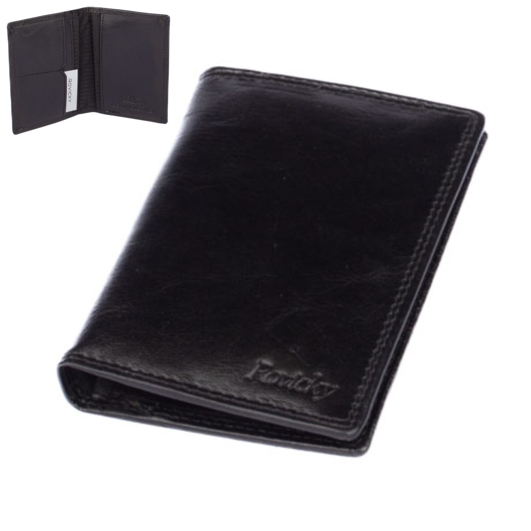 Kožené luxusní pouzdro na karty kreditní, debetní nebo jiné v dárkové krabičce. Barva pouzdra je černá. Lze použít i jako peněženku, pouzdro má jednu kapsu na bankovky. Díky malému rozměru je pouzdro ideální i jako peněženka na karty. Pouzdro je značky Rovicky.
