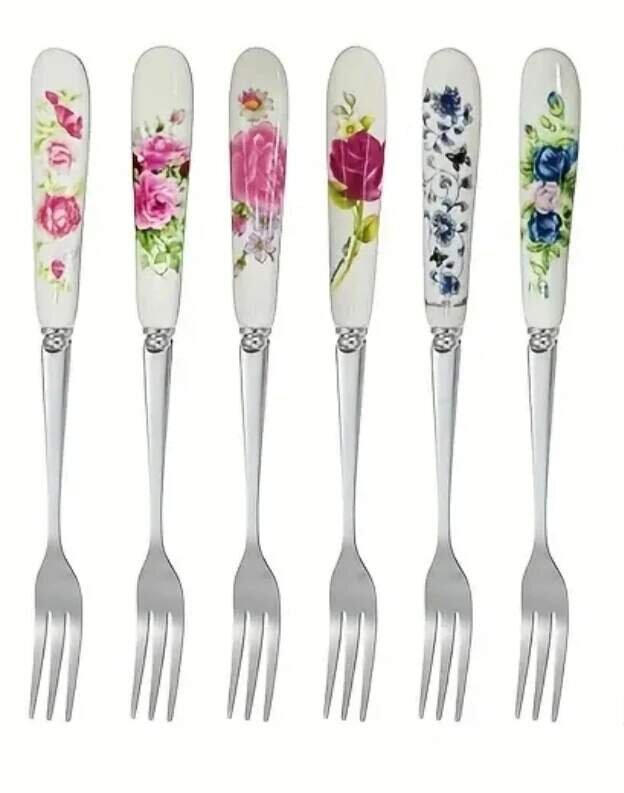 Sada 6 dezertních vidliček z nerezové oceli se vzorem kytek v bílé/růžové/zelené/modré barvě. Vidličky mají jemně zdobenou keramickou rukojeť a jsou vhodné do myčky na nádobí.Květiny mají společný půvab, líbeznost, rafinovanost a výrazná dekorativní funkce, která dokáže zkrášlit jakýkoli kontext....