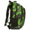 Piksele, a może drobne cząsteczki? Intensywnie zielone oraz grafitowe sześciany łączą się w konfigurację, tworząc trójwymiarową przestrzeń. Głębi dodają im padające na nie cienie. Układankę z figur dopełniają czarne suwaki i zamki. Ten plecak dla chłopca z pewnością wyróżni się na szkolnym...