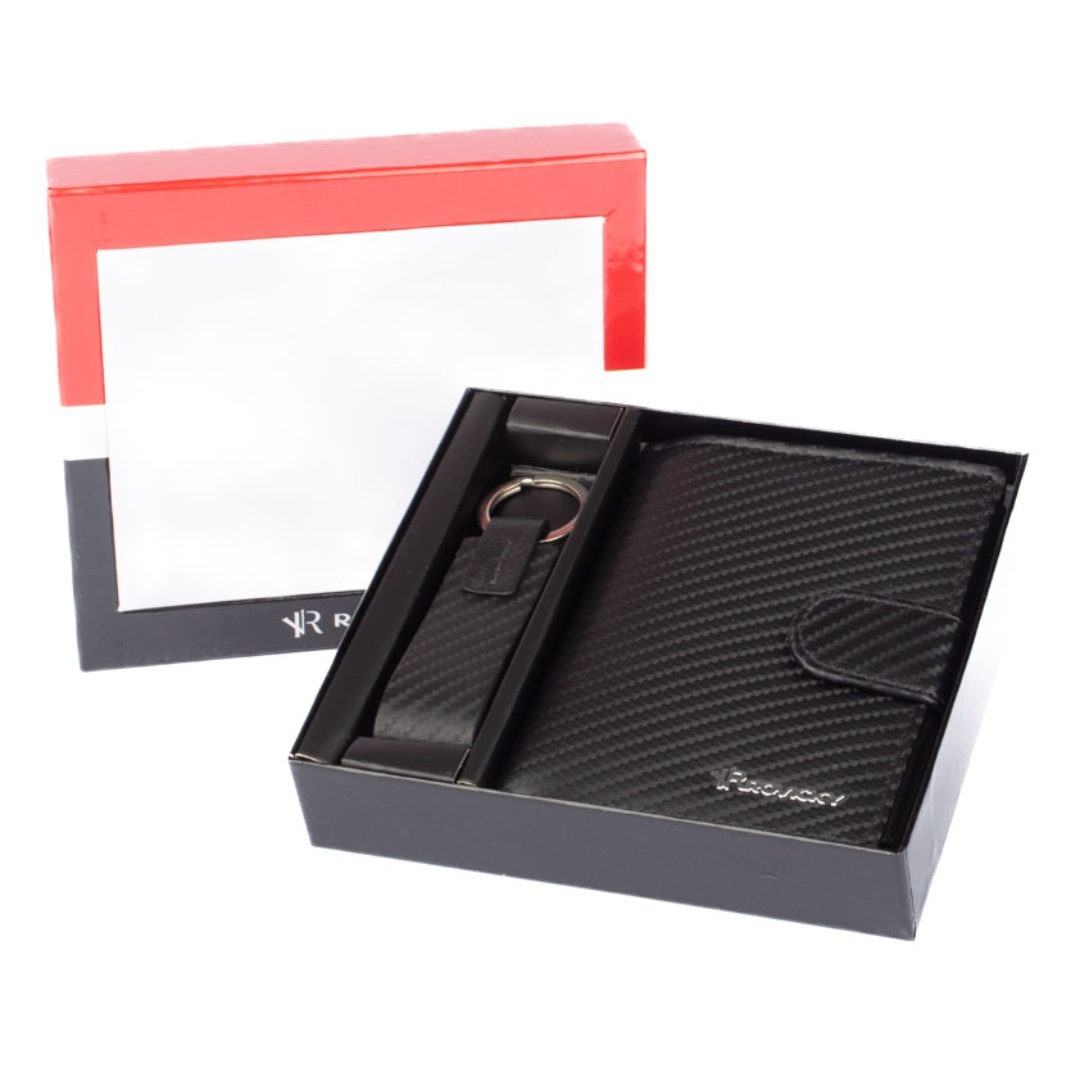 Luxusní sada peněženky s klíčenkou je vyrobená z pravé kůže černé barvy. Na povrchu má jemné vzorování. Peněženka i klíčenka jsou vyrobené ve stejném designu. Díky tomu k sobě dokonale ladí. Sadu dodáváme v originální dárkové kazetě.Měkká kůže na dotekPravá kůže je velmi jemná a zároveň příjemná...