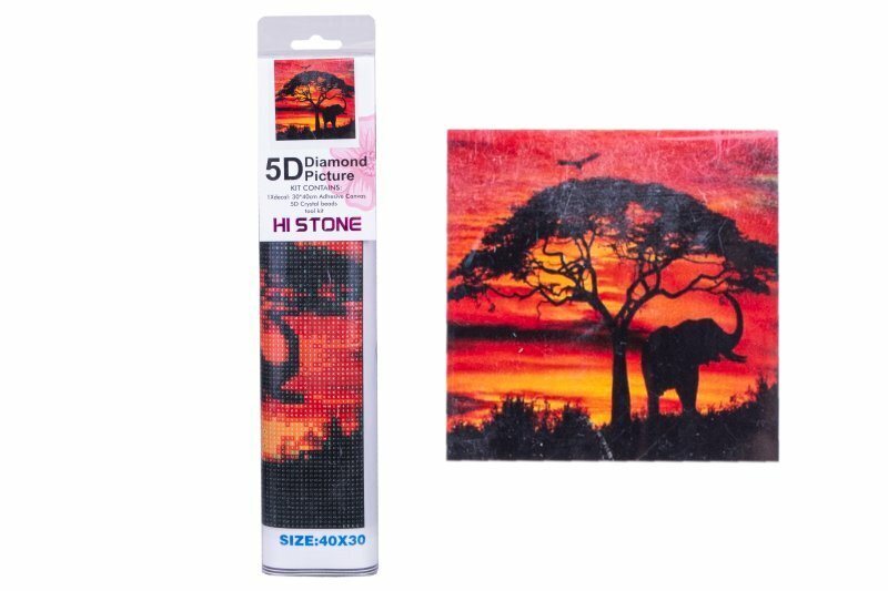 Haft Diamentowy Diamentowa mozaika Słoń Zachód Słońca Sawanna 40x30cm 1004944