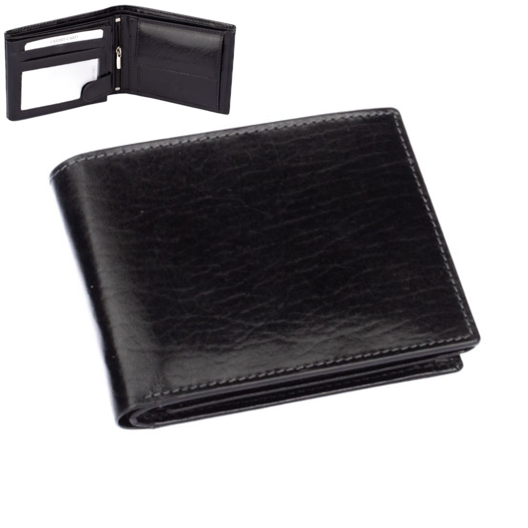 Pánská peněženka černá je vyrobená z pravé kůže. V peněžence je dostatek kapes na platební a jiné karty, kapsa na doklady a velké kapsy na bankovky. Samozřejmostí je také mincovník. Pánská peněženka černá je vyrobena z pravé kůže černé barvy, je značky Rovicky ale bez loga. Peněženka je dodávána v černé dárkové krabičce.