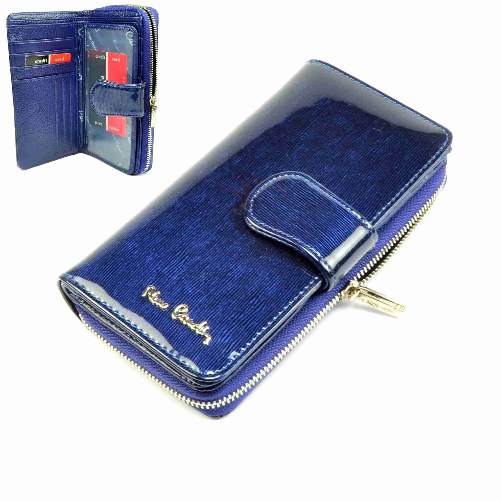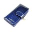 Barevná peněženka kožená dámská temně modré barvy fóliovaná z vnější strany. Pod klopou, kterou uzavírá přezka s dvěma pevnými druky, najdete klasické uspořádání. Uvnitř peněženky kožené dámské je dostatek kapes na karty, doklady, bankovky a jiné papírky. Velký mincovník je rozdělen na dvě kapsy...