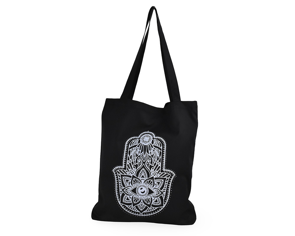 Praktická a stylová taška přes rameno, vyrobená z pevné a příjemné bavlny. Nemá vnitřní členění ani zapínání, takže snadno pojme i větší věci. Díky jednoduchému designu je ideální na každý den – do města, na nákup i jako originální dárek.Symbol Hamsa - ruka Fátimy - ruka se zdviženými prsty chrání svého nositele před negativní energií a přitahuje štěstí, klid a harmonii.