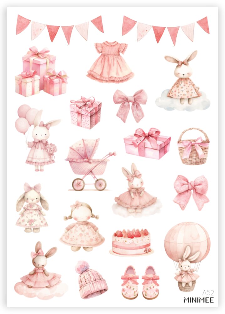 Oryginalne wycinane naklejki w arkuszu A5. Arkusz jest pełen pięknych motywów, które ozdobią każdy notes. Doskonale pasują do papieru notesu MINIMEE. Wysokiej jakości biała naklejka o matowym, naturalnym wyglądzie.