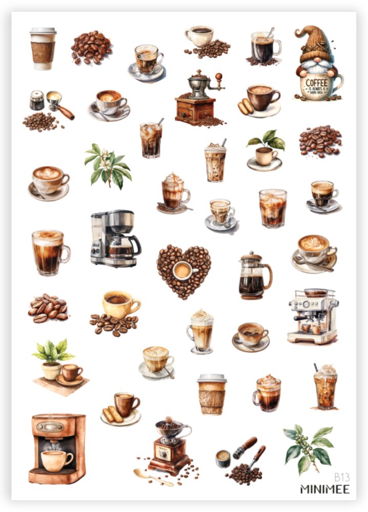 Oryginalne wycinane naklejki na arkuszu A5. Arkusz jest pełen pięknych motywów, które ozdobią każdy notes. Idealnie pasują do papieru notesu MINIMEE. Wysokiej jakości biała naklejka o matowym, naturalnym wyglądzie.