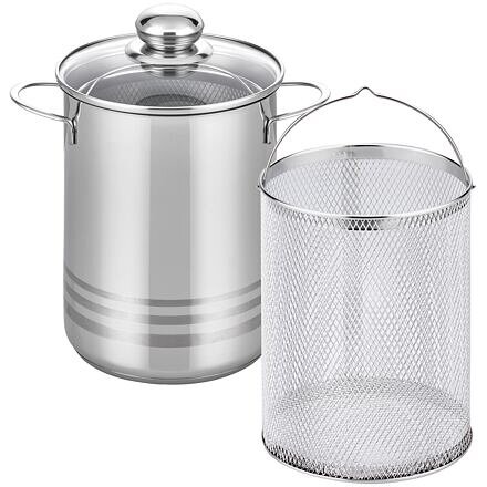Garnek do szparagów Ø 16 cm Brillant ELO BASICGarnek do szparagów Brillant marki ELO został zaprojektowany, aby ułatwić gotowanie nie tylko szparagów, lecz także innych składników. Dzięki praktycznemu drucianemu koszowi ugotowane produkty można łatwo wyjąć bez konieczności skomplikowanego wylewania wody. Garnek wykonano z wysokiej jakości stali nierdzewnej i wyposażono w zintegrowaną miarkę ułatwiającą odmierzanie płynów. Szklana pokrywka z osłoną na palce zapewnia bezpieczne użytkowanie. Kapslowe, warstwowe dno równomiernie rozprowadza ciepło i nadaje się do wszystkich rodzajów kuchenek, w tym indukcyjnych. Garnek można również używać jako garnek do gotowania na parze, co pozwala delikatnie przygotowywać warzywa.Główne zalety garnka do szparagów Brillant:praktyczny kosz do łatwego wyjmowania potrawidealny także do gotowania na parze - zdrowszy sposób przygotowaniaintegrowana miarka wewnątrz garnkaszklana pokrywka z odporną na uderzenia obręczą i osłoną na palcekapslowe dno dla równomiernego rozkładu ciepławygodny do mycia w zmywarcekompatybilny ze wszystkimi typami płyt grzewczych, w tym indukcjąParametry garnka do szparagów Brillant:seria: Brillantśrednica: 16 cmśrednica dna: 13,3 cmwysokość: 21 cmpojemność: 4,0 lmateriał: stal nierdzewnatługość ścianki: 0,5 mmtługość dna: 2,5 mmsendvičowe kapslowe dnowewnętrzna powierzchnia polerowana z miarką objętościzewnętrzna powierzchnia polerowana z 3 matowymi pasamiplaskie druciane uchwyty ze stali nierdzewnejszklana pokrywka z odporną na uderzenia, nierdzewną obręczą i uchwytem z osłoną na palceodpowiedni do zmywarkiodpowiedni do wszystkich typów płyt grzewczych, w tym indukcjiELO Energy Score: BELO Energy Score:Oszczędne gotowanie oszczędza energię i twoje koszty. Oprócz klasy energetycznej urządzeń ważny jest także wybór odpowiednich naczyń, ponieważ materiał, grubość dna i ścian wpływają na efektywność przekazywania ciepła. Dzięki ELO Energy Score uzyskasz przegląd energooszczędności poszczególnych produktów i będziesz mógł gotować efektywniej oraz bardziej przyjaznie dla środowiska i portfela. Garnek do szparagów Brillant ma klasę energetyczną B (skala A-G).Zawartość opakowania garnka do szparagów Brillant:1× garnek do szparagów Ø 16 cm Brillant1× szklana pokrywka1× druciany koszZastosowanie garnka do szparagów Brillant:idealny do gotowania szparagów, spaghetti, kiełbas czy warzywodpowiedni do gotowania w wodzie oraz gotowania na parze