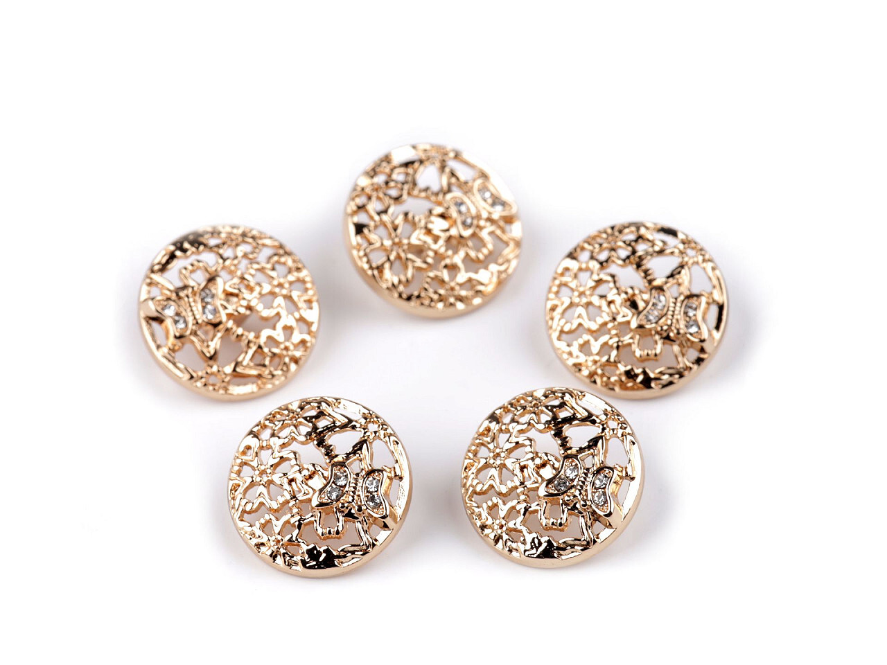 Kovový knoflík velikost 28", 34" s motýlkem a kamínky - 5 ks - 3 (28") růžové zlato