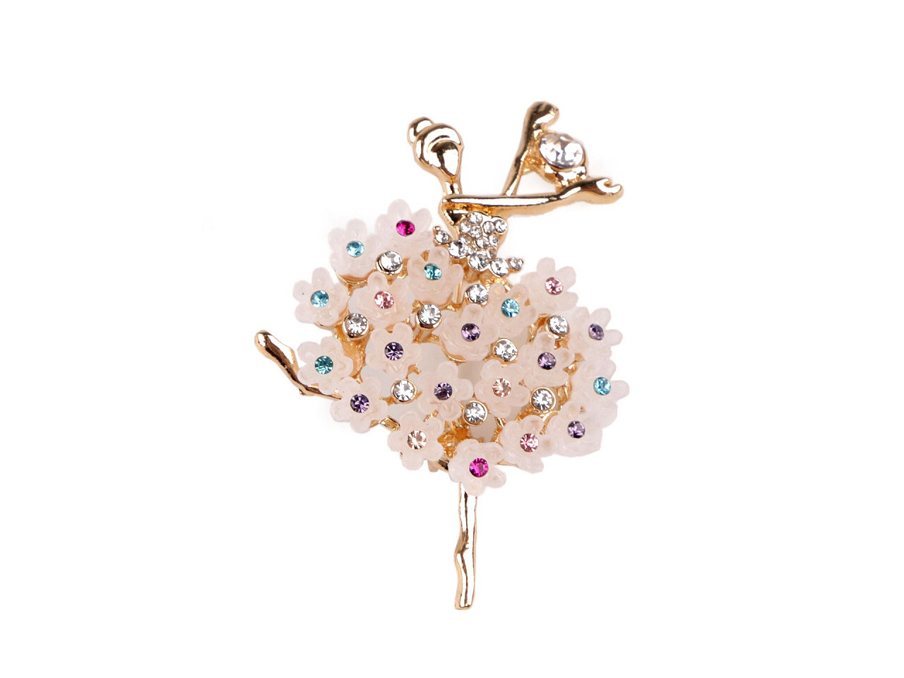 Brož s broušenými kamínky baletka - 1 ks - 1 bílá