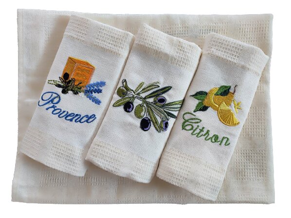 Každá z utěrek má jiné, atraktivní jednostranné vyšívání. Materiál Bavlněné utěrky jsou velmi oblíbené pro svoji savost a měkkost. Jedná se o utěrky s dlouhou životností. Velkou výhodou těchto utěrek je možnost praní při vyšších teplotách, takže se z nich lépe odstraní případné nečistoty. Balení...