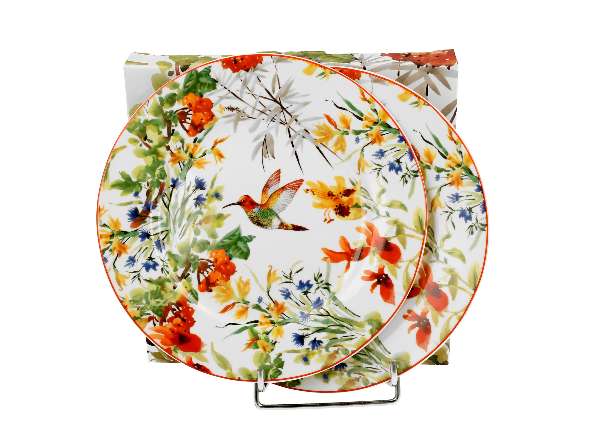 Komplet dwóch talerzy deserowych LINNEA wchodzący w skład serii Flower Classic, wykonany z porcelany New Bone China, charakteryzującej się elegancką i naturalną kremowo - białą barwą z delikatnym połyskiem, a także wyjątkową wytrzymałością.Linia zdobiona motywem malowanych kwiatów w wyrazistych...