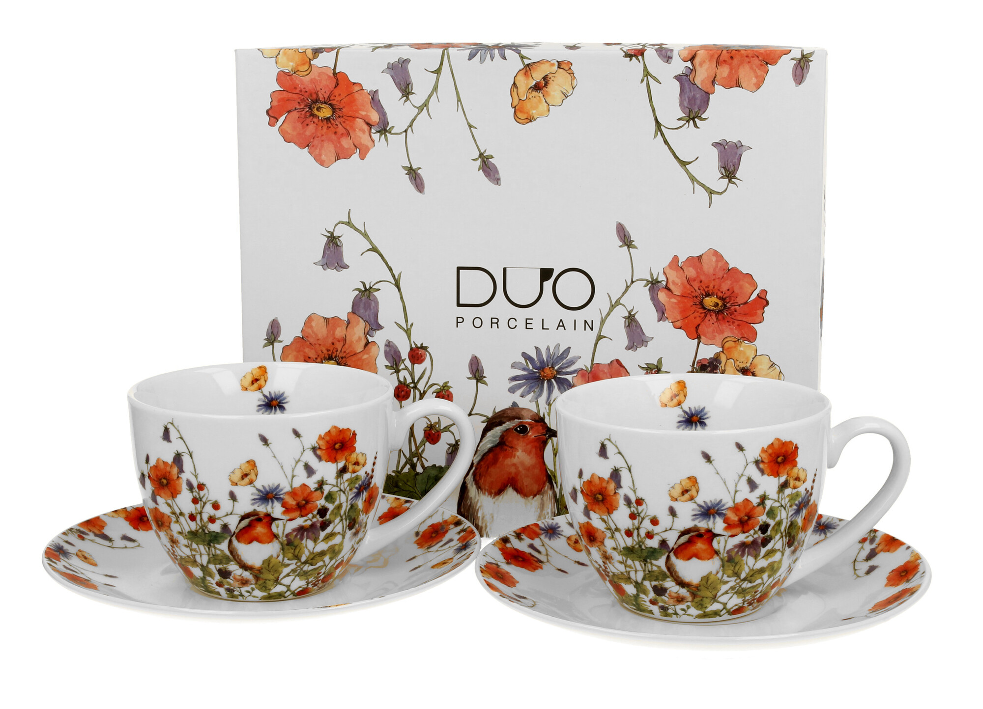 Komplet dwóch filiżanek ze spodkami WILD BIRD wchodzący w skład serii Flower Classics, wykonany z porcelany New Bone China, charakteryzującej się elegancką i naturalną kremowo - białą barwą z delikatnym połyskiem, a także wyjątkową wytrzymałością.Linia zdobiona uroczym fragmentem polnej łąki,...