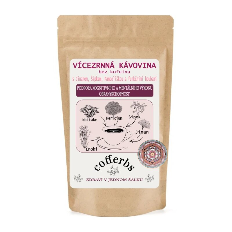 VÍCEZRNNÁ KÁVOVINA - BEZ KOFEINU - Na podporu kognitivního a mentálního výkonuObjevte sílu přírody s našimi produkty obsahujícími adaptogeny a funkční houby.Návod na přípravuVícezrnnou kávovinu zalijte vodou o teplotě 90-100 °C v poměru 1 lžička (3g) na 150 ml vody.Promíchejte a nechte mírně...