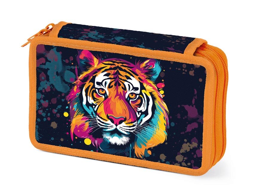 Gotowy na szaloną jazdę szkolnym dniem? Z tym dwupoziomowym piórnikiem z tygrysem każda kredka i długopis będą mieć swoje miejsce, a ty znajdziesz je w mgnieniu oka!