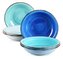 Z średnicą 21 cm i wysokością 5 cm talerze są wystarczająco pojemne do serwowania zup i innych dań, a dzięki jednolitej niebieskiej stylistyce zestaw łatwo dopasować do pozostałej zastawy.