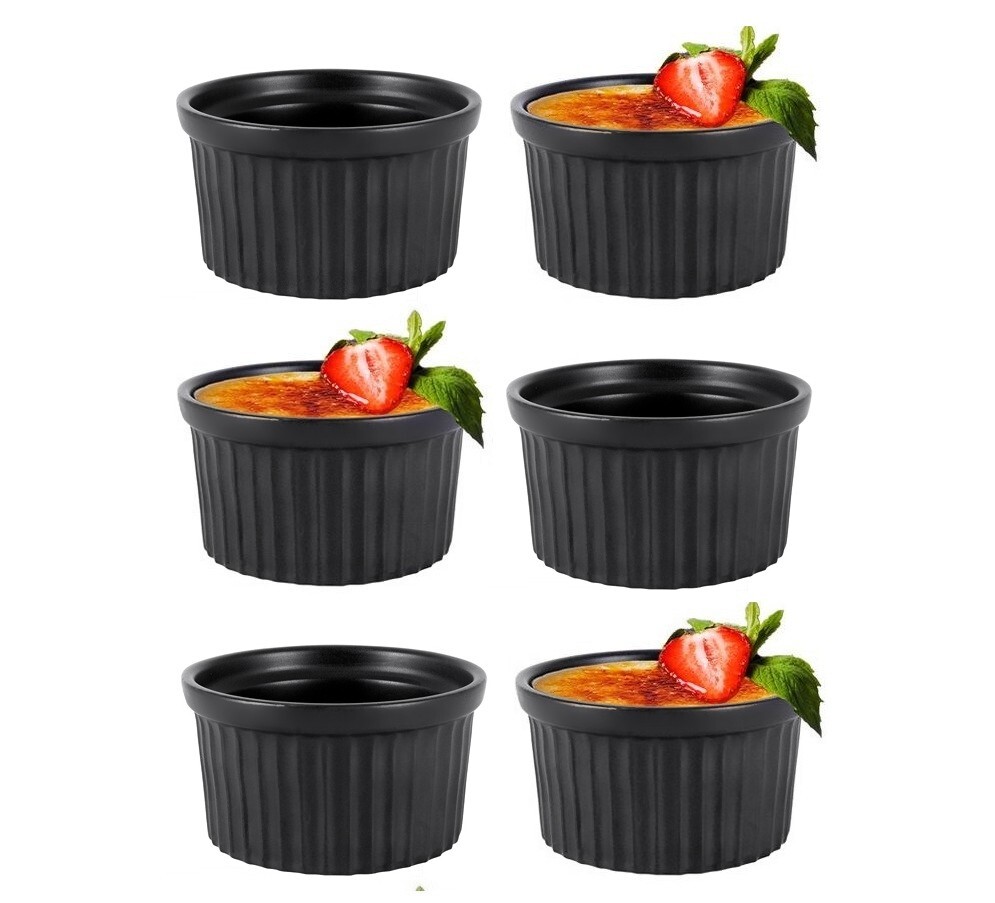 Ulepsz swoje deserowe doznania dzięki tym ognioodpornym formom do creme brûlée i ciesz się radością przygotowywania oraz podawania deserów. Seta zawiera 6 sztuk. Zawartość opakowania: 6 x miseczki. Wymiary: 9 x 5 cm. Materiał: porcelana. Odporność temperaturowa: nadają się do piekarnika do 280 °C. Design: prosty design, który pasuje do innych wzorów naczyń. Kolor: matowa czerń.