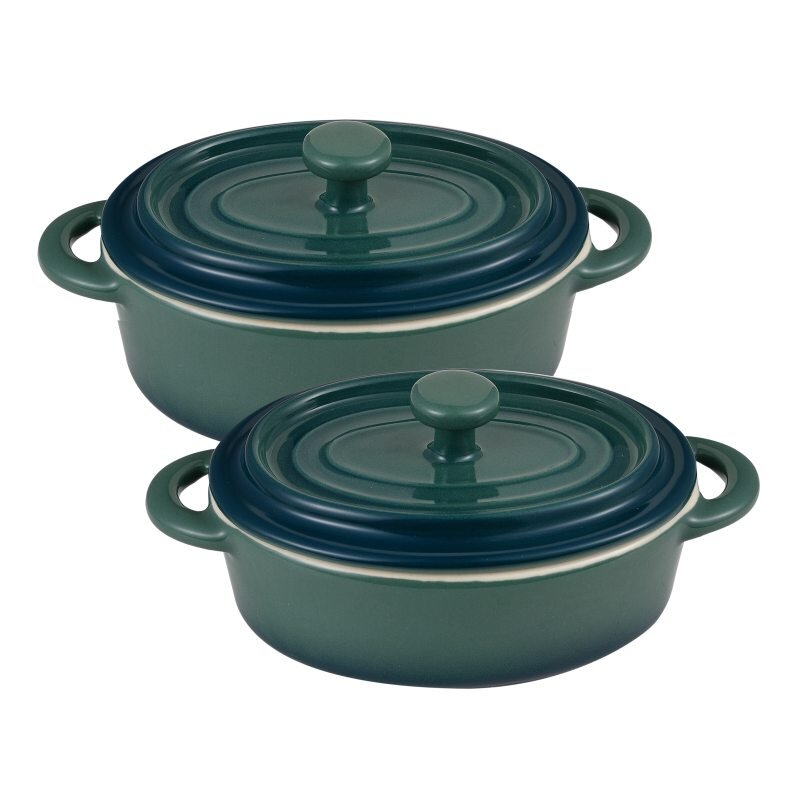 • Materiál: kamenina• Barva: zelený gradientový efekt• Tvar: oválný• Rozměry: 2 ks (miska + poklice)• Vhodné do trouby, mikrovlnné trouby i myčky