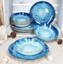 Zestaw 6 dużych talerzy obiadowych z atrakcyjnej kolekcji OCEAN. Zestaw wykonany jest z solidnej i wytrzymałej porcelany i nadaje się dla nawet 6 osób. Talerze obiadowe nadają wyjątkowy akcent dzięki swojemu morskiemu wzornictwu i efektownemu wyglądowi. Podczas gdy wnętrze jest proste i białe, zewnętrzna część przedstawia piękny widok na ocean. Przypomina to dziką morską taflę, oddaje fascynujący falisty wzór i iskrzącą morską wodę. Talerze obiadowe są bez obaw odpowiednie do kuchenki mikrofalowej i zmywarki. Zestaw zawiera 6 talerzy. Średnica talerza 27 cm Wysokość 3 cm