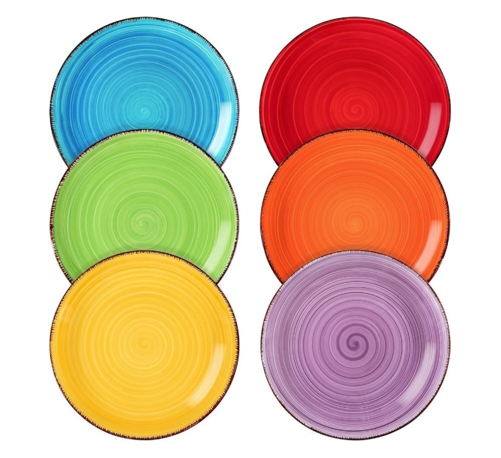 Zestaw 6 szt. dużych talerzy obiadowych z kolorowej kolekcji COLOURS. Zestaw jest wykonany z wysokiej jakości i odpornej ceramiki z glazurą i jest odpowiedni nawet dla 6 osób. Duże talerze obiadowe nadają się do serwowania dań głównych oraz wszelkiego rodzaju potraw. Można je również używać do serwowania przekąsek. Bez obaw nadają się do kuchenek mikrofalowych, zmywarek oraz do lodówki. Zestaw zawiera 6 szt. talerzy. Średnica talerza 26,5 cm Wysokość 2 cm