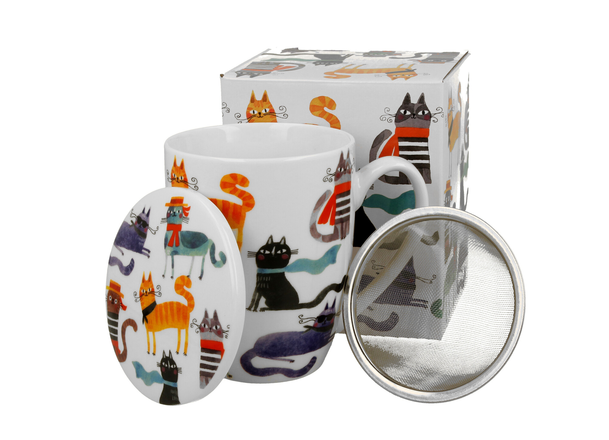 Kubek z zaparzaczem Koci Świat STYLOWE KOTY wchodzący w skład serii Animals, wykonany z porcelany New Bone China, która charakteryzuje się naturalnym kremowo-białym kolorem z delikatnym połyskiem oraz wyjątkową wytrzymałością i trwałością, zachowując lekkość i finezję. Idealny do zaparzania...