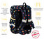 - VNITŘNÍ USPOŘÁDÁNÍ – prostorná hlavní vnitřní komora je rozdělená látkovou přepážkou pro uložení boxu na sešity či knih. Součástí hlavní komory je také kapsička pro uložení drobností, odepínatelný kroužek na klíč a štítek na jméno a adresu. Ve víku je průhledná kapsička na rozvrh hodin