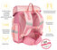 - VNITŘNÍ USPOŘÁDÁNÍ – prostorná hlavní vnitřní komora je rozdělená látkovou přepážkou pro uložení boxu na sešity či knih. Součástí hlavní komory je také kapsička pro uložení drobností, odepínatelný kroužek na klíč a štítek na jméno a adresu. Ve víku je průhledná kapsička na rozvrh hodin