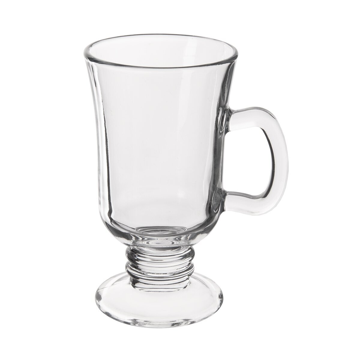 Vysoký čirý hrnek na nožce s uchem na čaj nebo různé druhy kávy... Materiál: sklo. Max. teplota 100 °C. Rozměry: objem 0,25 l, pr. 7,5 cm, v. 13,5 cm. Lze mýt v myčce na nádobí. Vhodný do domácnosti i pro kavárny, restaurace... Není možné použít v MVT. przeczytaj całość