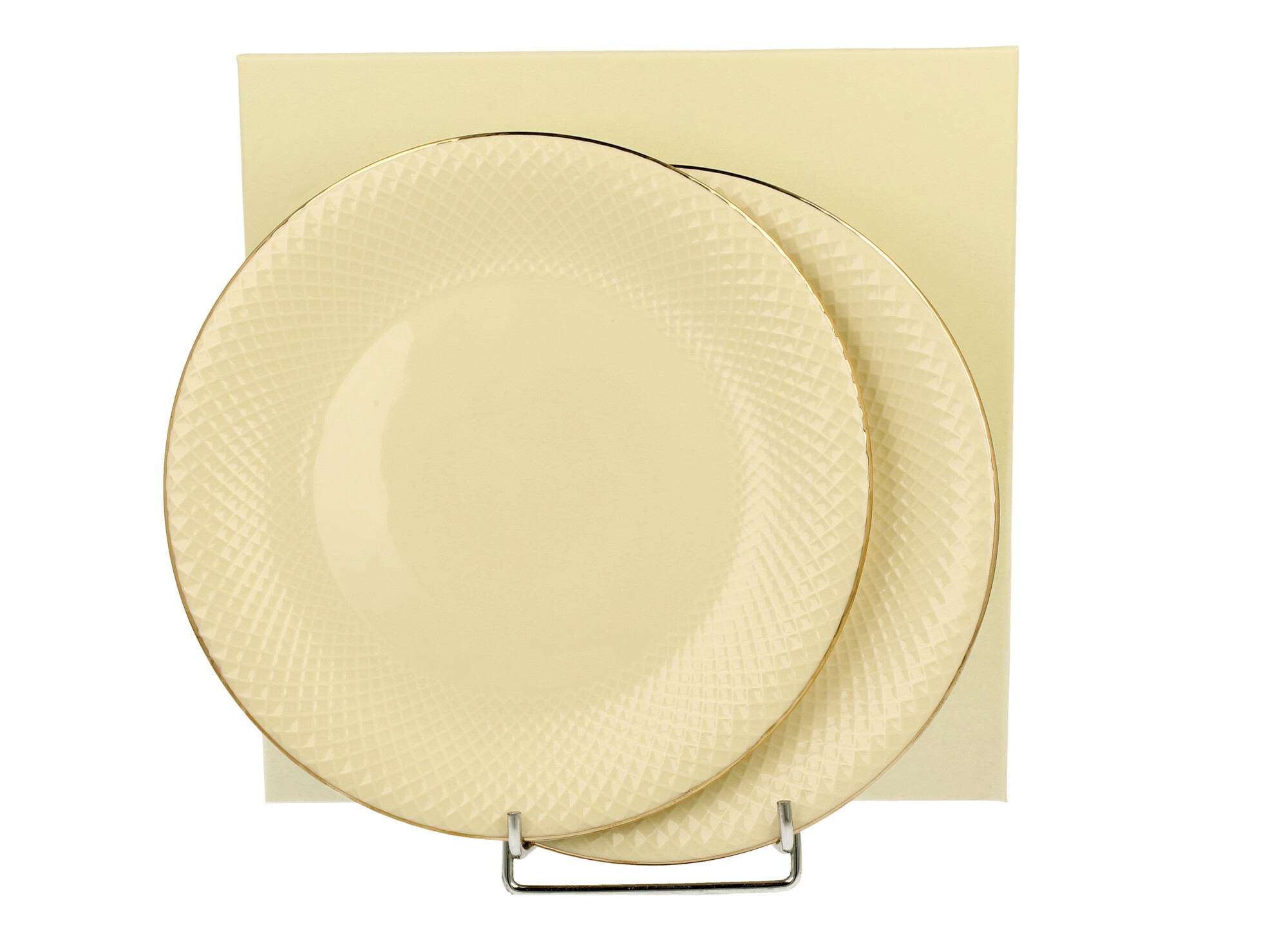 Komplet dwóch talerzy deserowych VESPER wchodzący w skład serii ECRU Exclusive, wykonany z porcelany New Bone China w subtelnym kolorze ecru, która charakteryzuje się delikatnym połyskiem oraz wyjątkową wytrzymałością i trwałością, zachowując przy tym lekkość i finezję. Linia wykonana z...