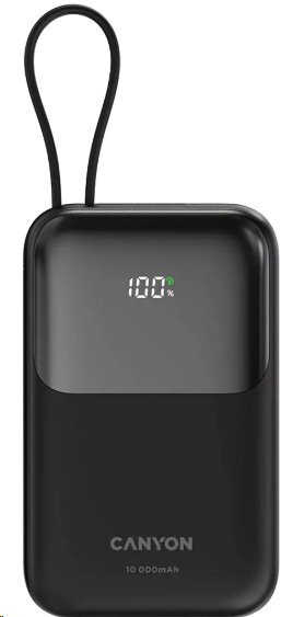 CANYON Power Bank PB-101, 10000mAh PD22.5W built-in cable, black