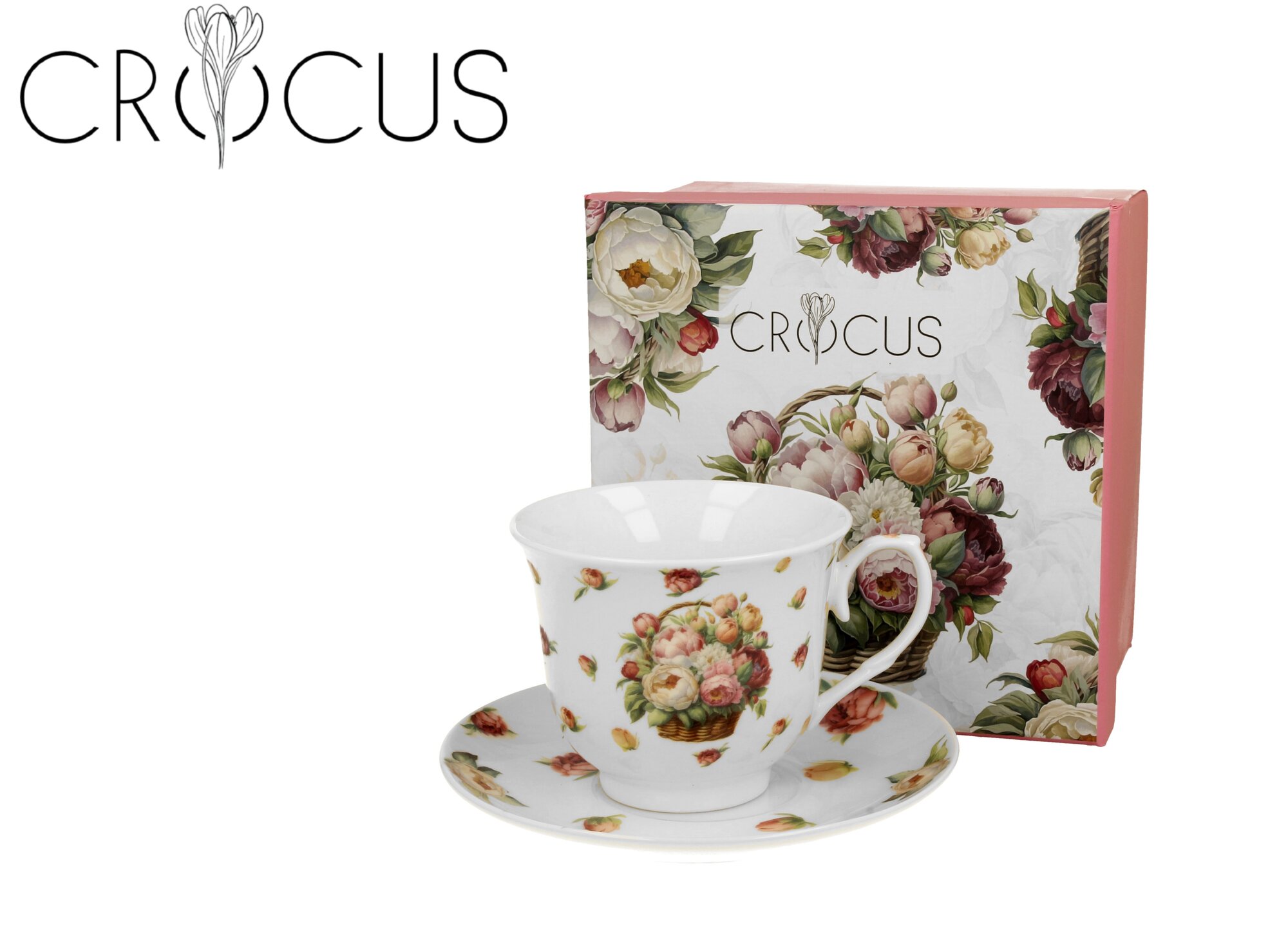 Filiżanka ze spodkiem Kosze Kwiatów PIWONIE wchodzący w skład serii CROCUS, wykonany z porcelany New Bone China, charakteryzującej się elegancką i naturalną kremowo - białą barwą z delikatnym połyskiem, a także wyjątkową wytrzymałością. Linia zdobiona misternym motywem wiklinowego koszyka,...