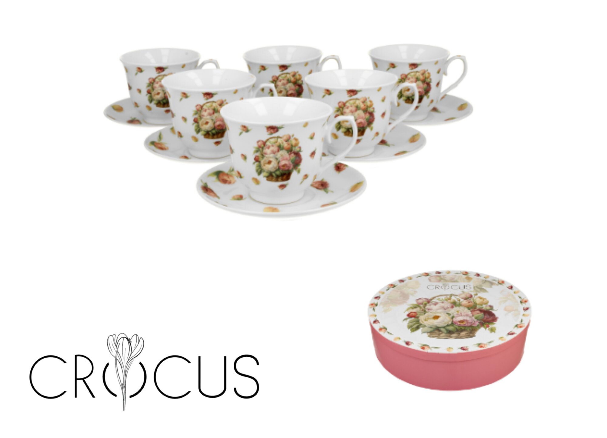 Komplet sześciu filiżanek ze spodkami Kosze Kwiatów PIWONIE wchodzący w skład serii CROCUS, wykonany z porcelany New Bone China, charakteryzującej się elegancką i naturalną kremowo - białą barwą z delikatnym połyskiem, a także wyjątkową wytrzymałością. Linia zdobiona misternym motywem wiklinowego...