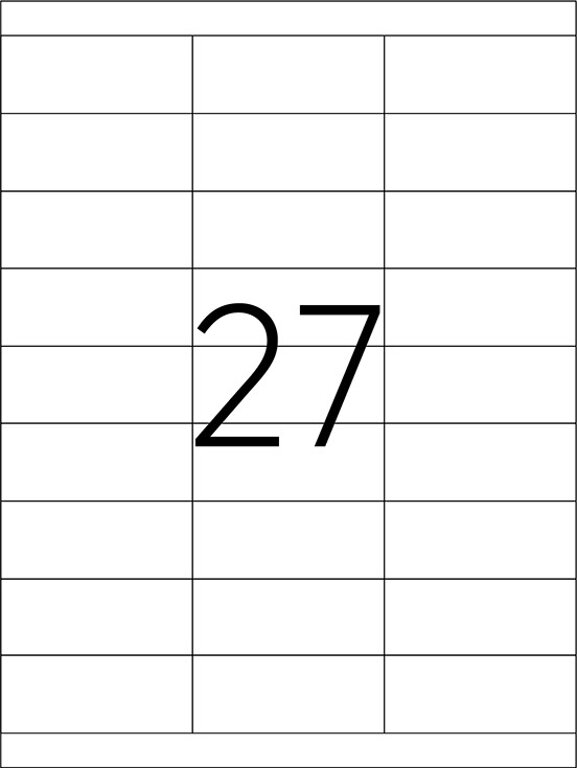 kolor: biała wymiary etykiety: 70 x 30 mm liczba etykiet na arkuszu A4: 27 sztuk liczba etykiet w opakowaniu: 2700 sztuk